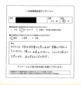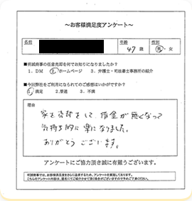 飛田さんから親身になってアドバイスをして頂き、自己破産を回避できたので本当に助かりました。ご紹介して頂いた弁護士さんも相談しやすく感じの良い方で良かったです。